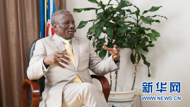 在中国两会召开之际,纳米比亚驻华大使伊莱亚·乔治·凯亚莫接受新华网专访。(图片来源:新华网)
